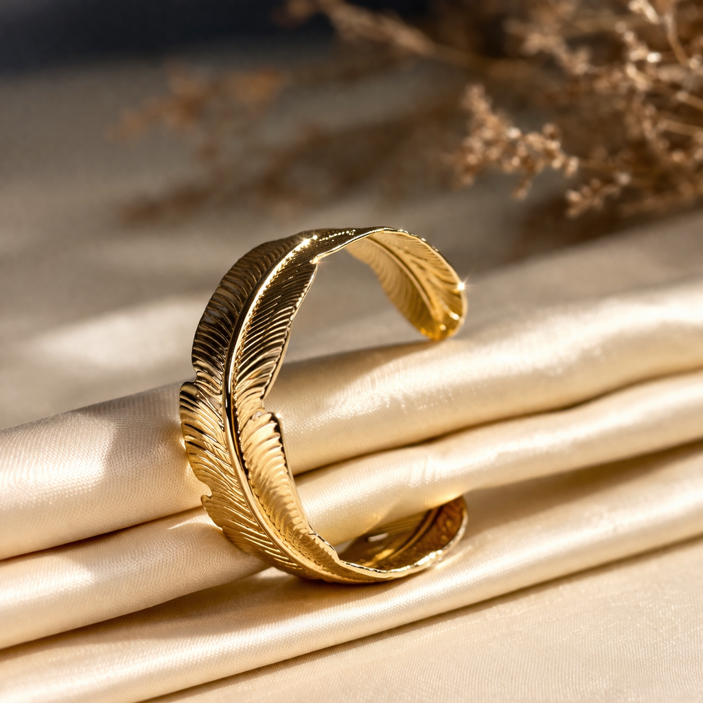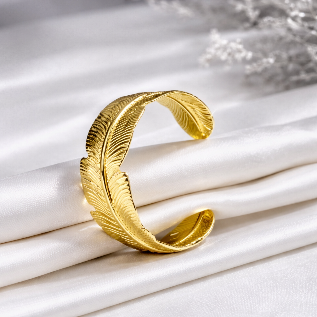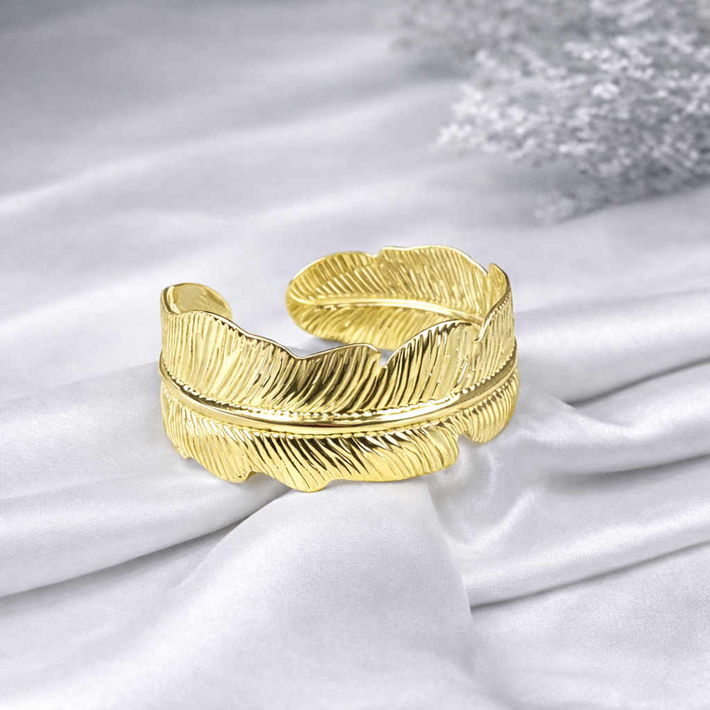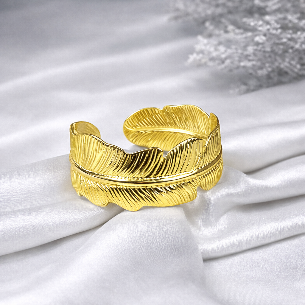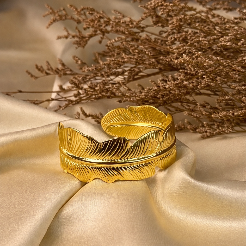 Golden Feather Statement Cuff Bangle
